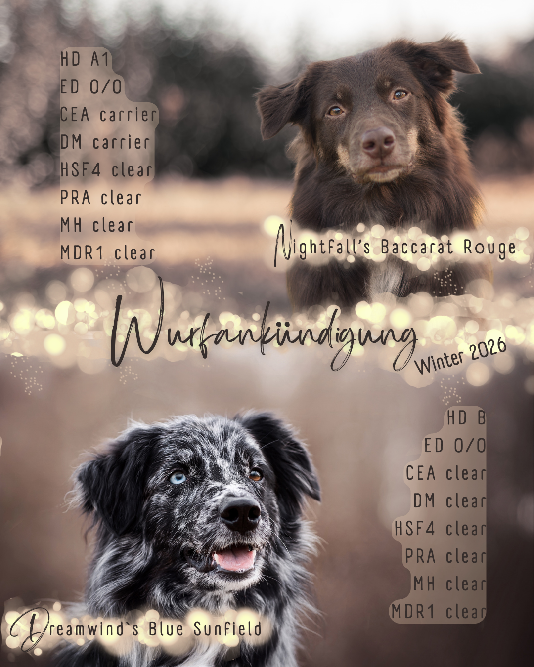 Für 2026 planen wir einen vielversprechenden Wurf aus zwei außergewöhnlichen Hunden:
